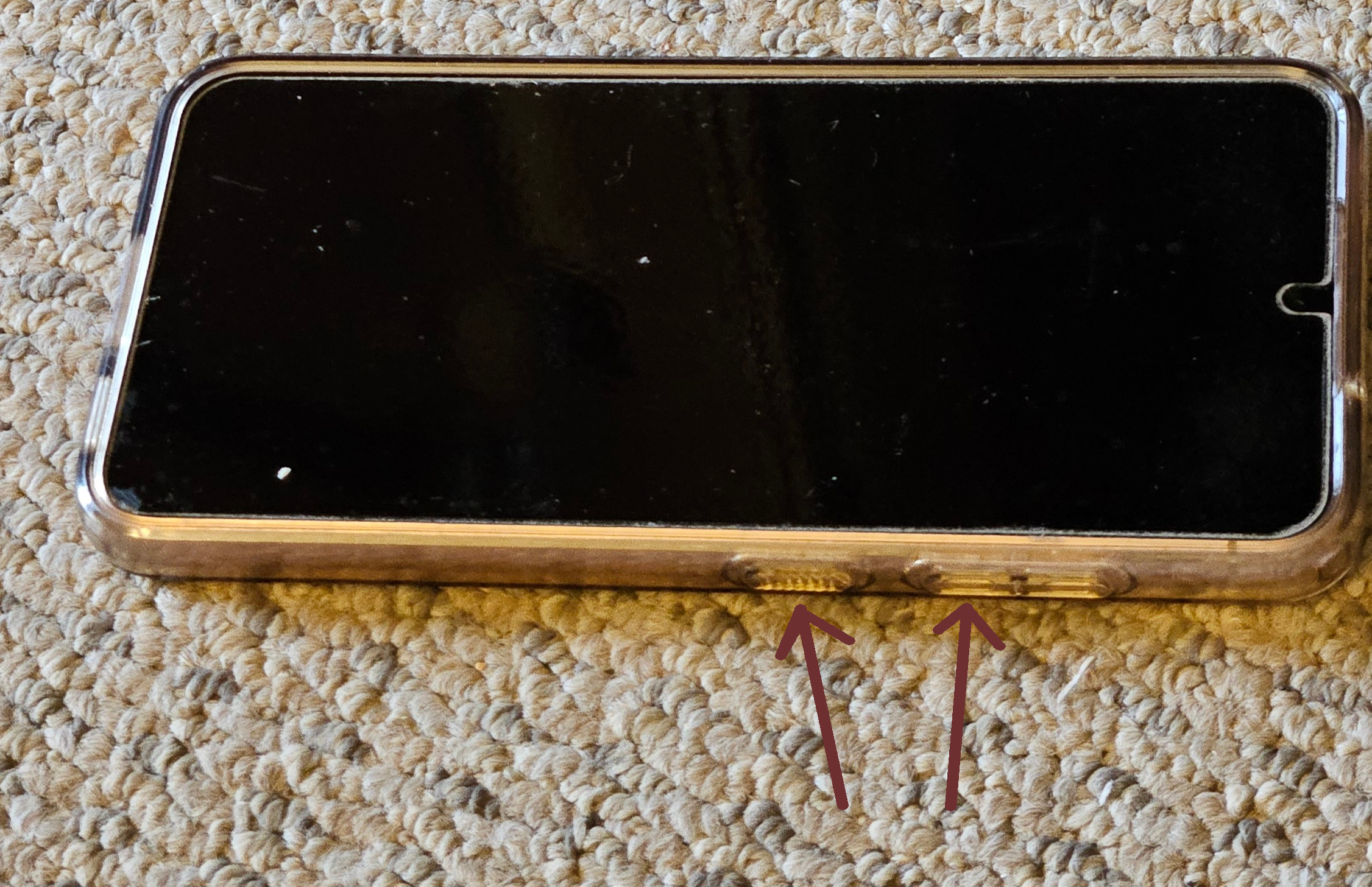 A. See the 2 red arrows in this image. Hold those buttons (On-Off & volume down) in for several seconds (until you stop seeing messages on your screen). Then your phone will start acting normal again.